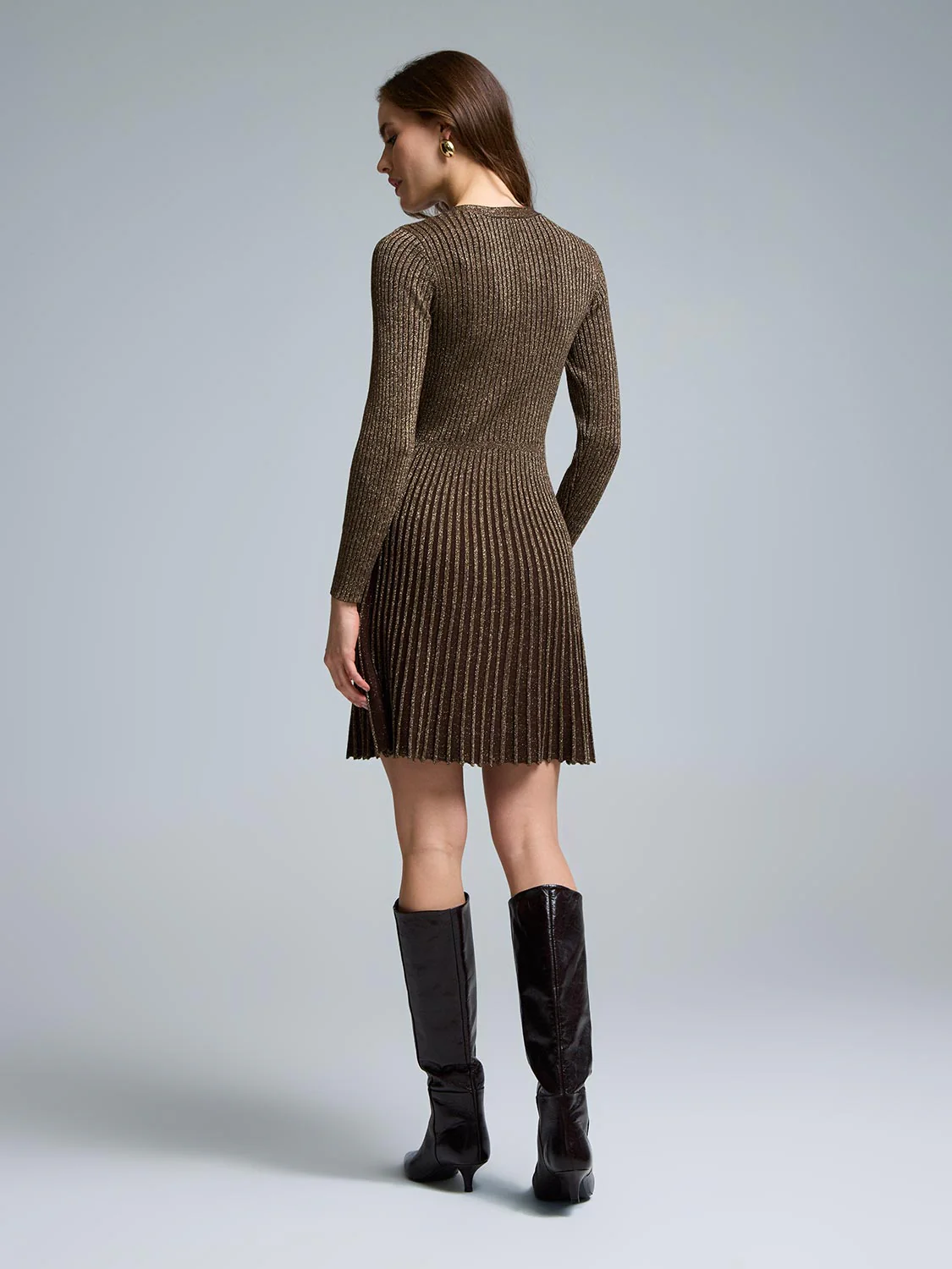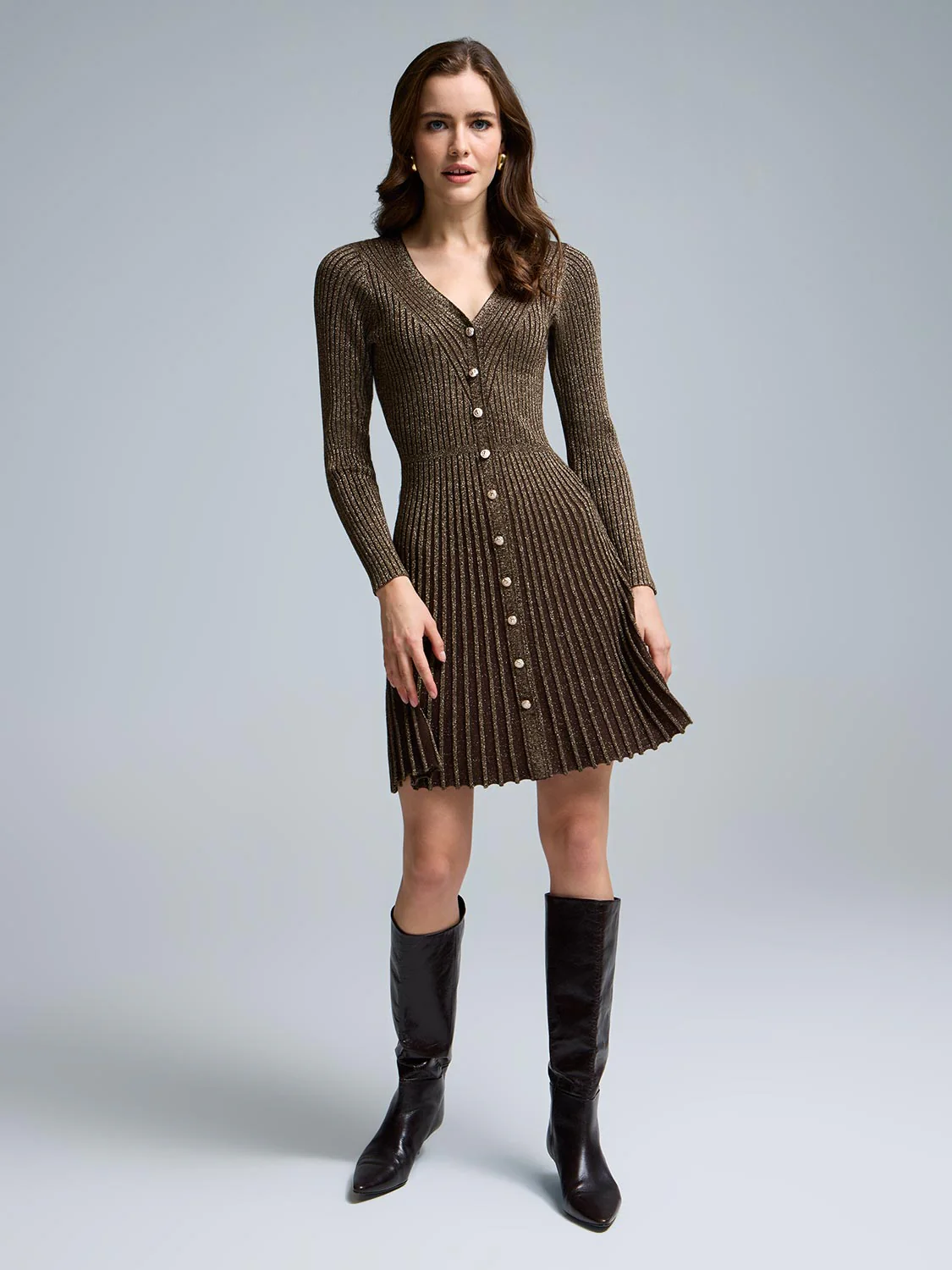 • Metallic V-Neck Mini Sweater Dress Metallic V-Neck Mini Sweater Dress