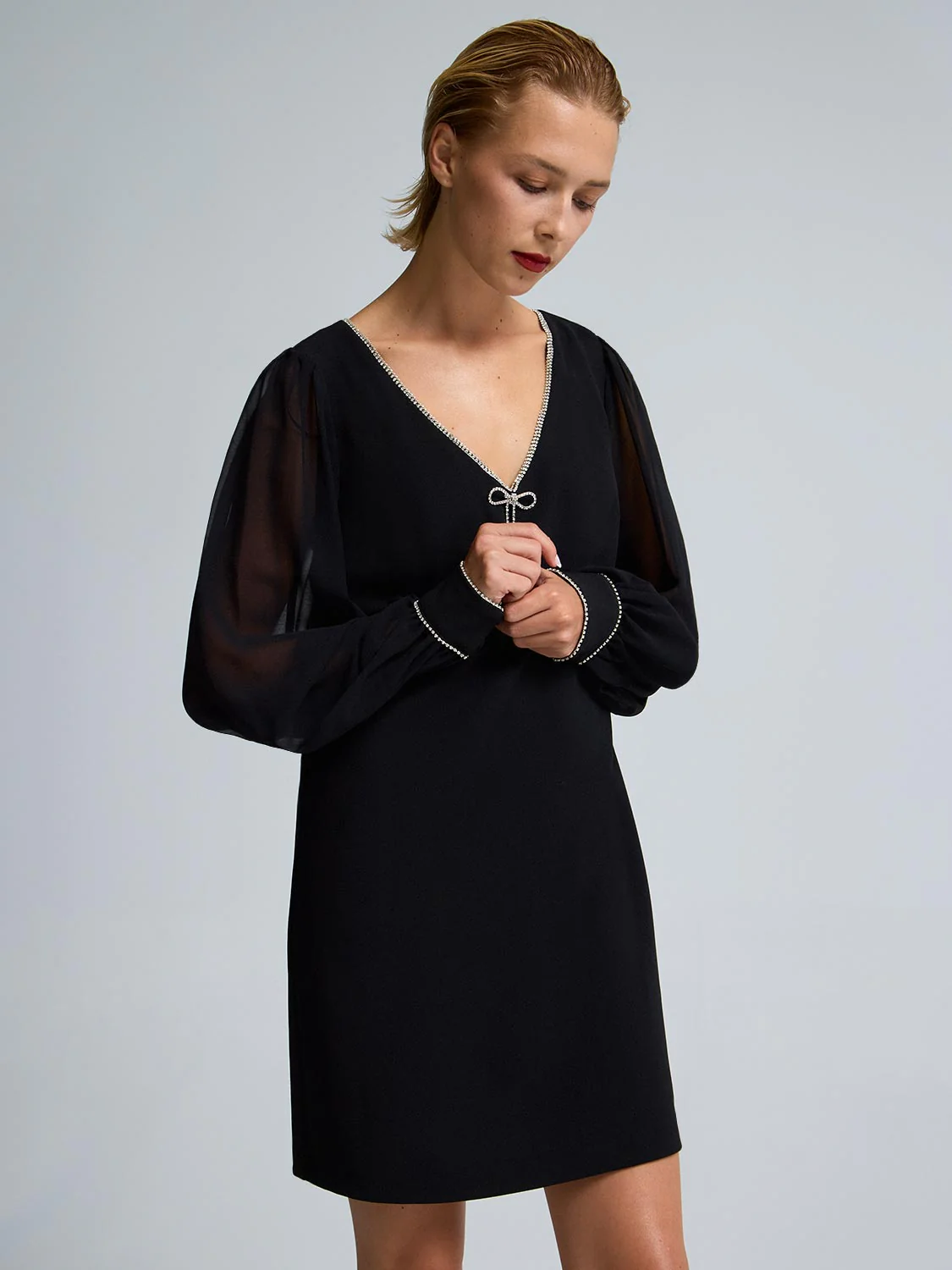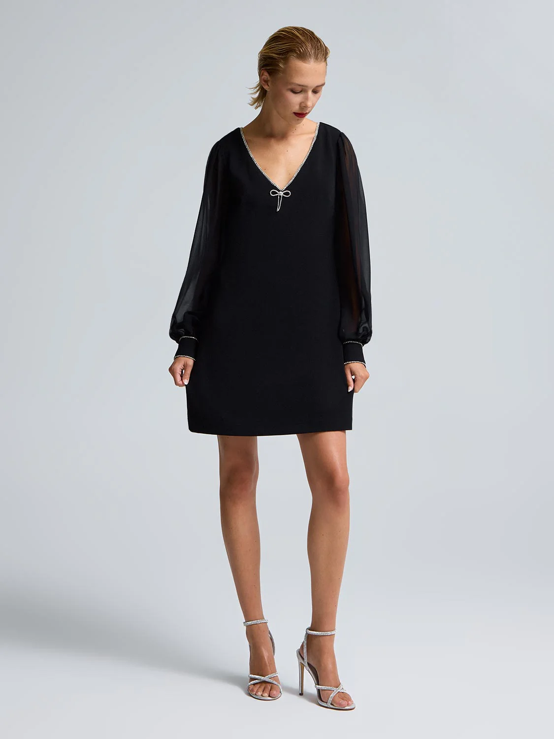 • Chiffon Sleeve V-Neck Mini Dress Chiffon Sleeve V-Neck Mini Dress