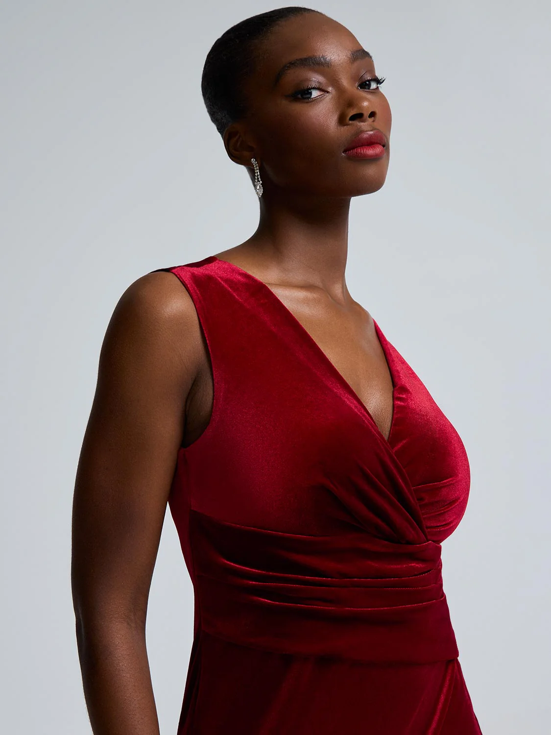 • Sleeveless V-Neck Velour Dress Sleeveless V-Neck Velour Dress