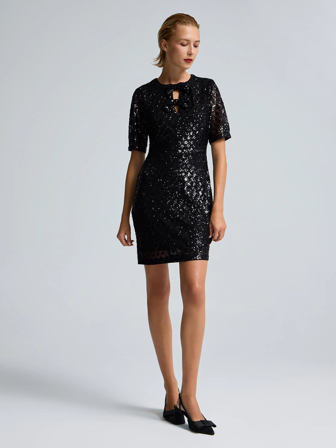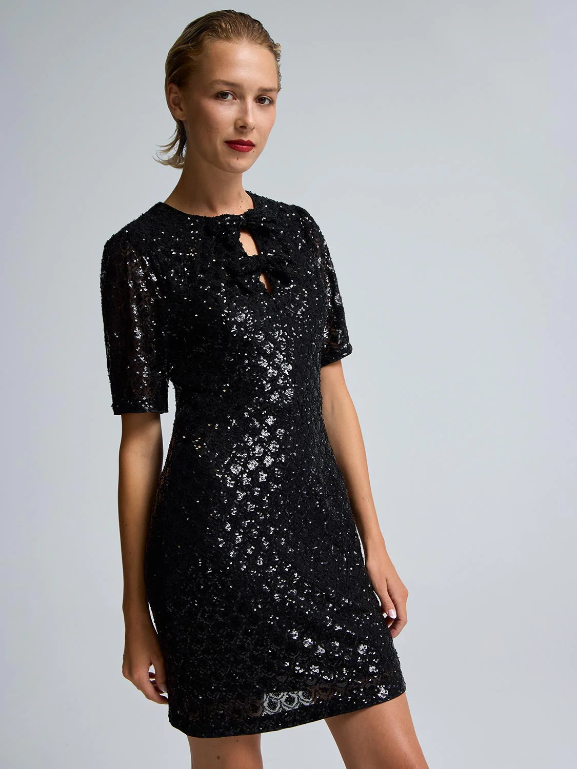 • Bow Detail Sequin Mesh Dress Bow Detail Sequin Mesh Dress