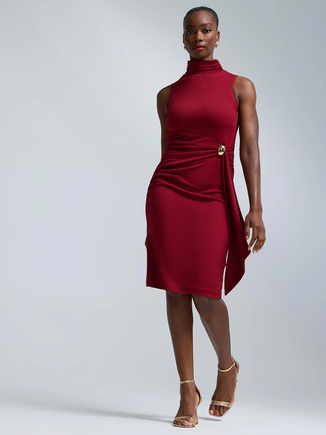 • Sleeveless Mock Neck Draped Dress Sleeveless Mock Neck Draped Dress