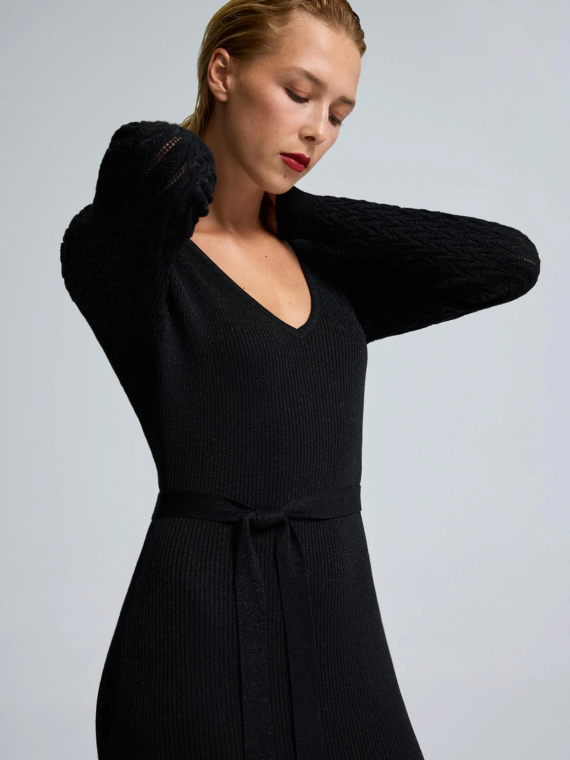 • V-Neck Metallic Midi Sweater Dress V-Neck Metallic Midi Sweater Dress